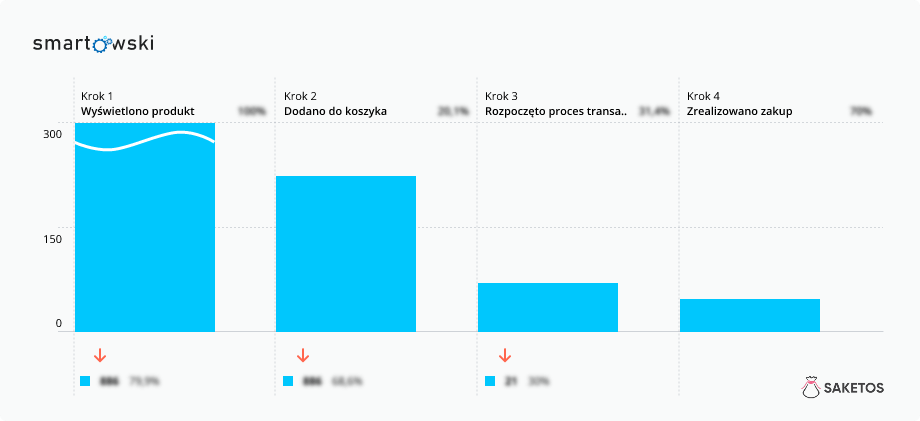 - identyfikacja problemów na drodze ścieżki zakupowej – na którym etapie występują najczęstsze porzucenia koszyka.